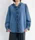・Vネックとフロントボタン周りのフリルが大人可愛いデニムシャツ。